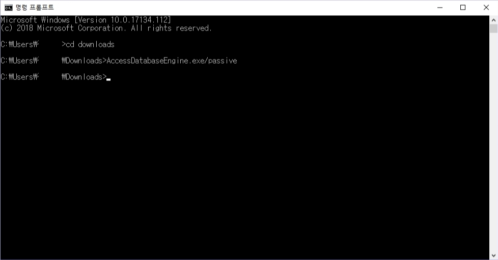 그 다음 줄에 AccessDatabaseEngine.exe / passive를 입력 후 Enter 키를 누르세요.