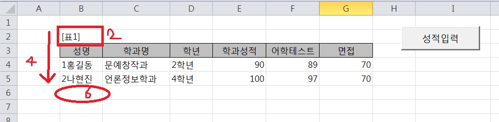그럼 6행 부터 입력이 되겠죠.