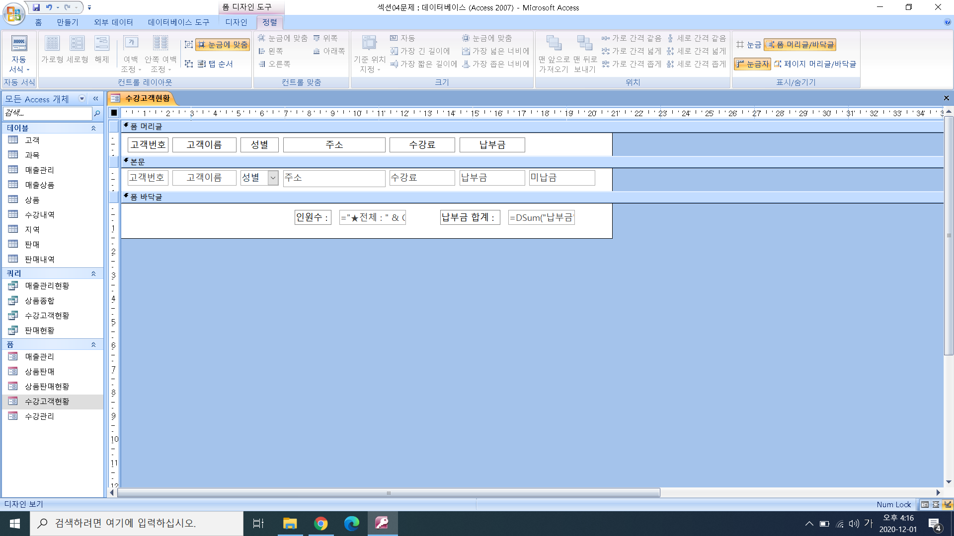 2권 데이터베이스 실무 4장 폼과 쿼리 부분 중 99쪽에 조건부 서식을 지정하기 위한 표디자인도구에서 형식탭이 없을때 어떻게 하나요