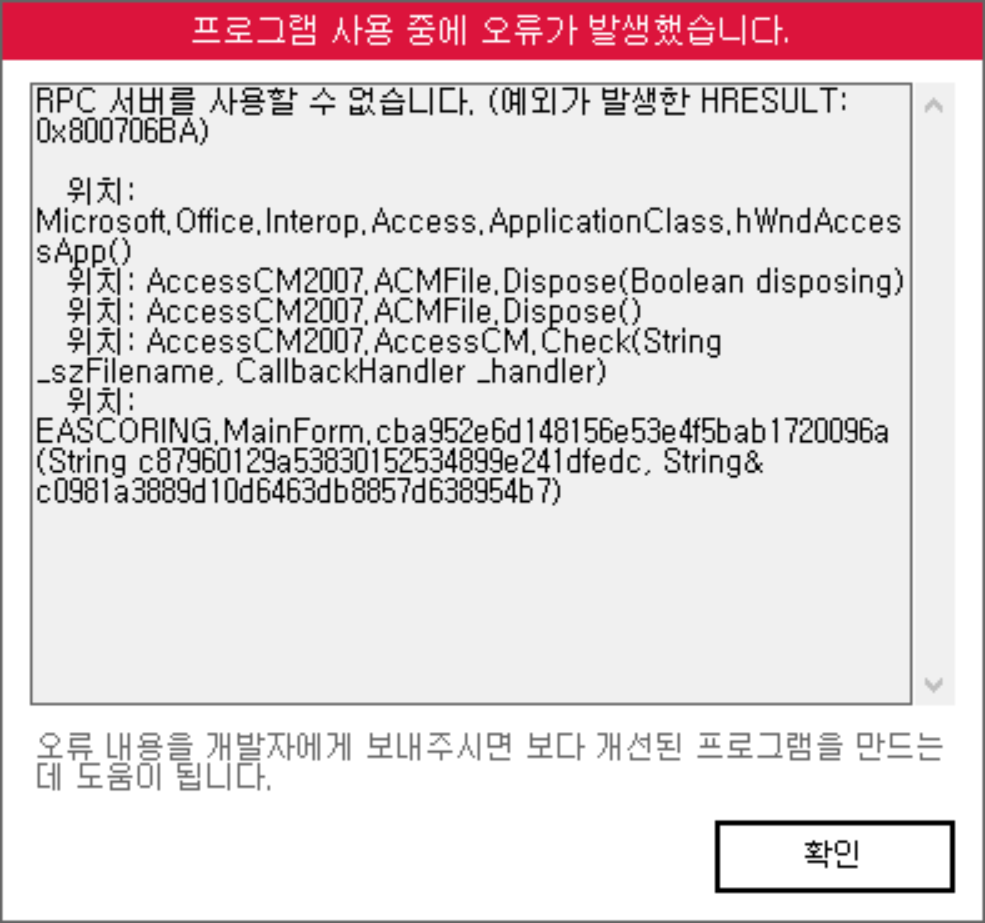 문의하신 오류는 채점 중 실행 중이었던 오피스 프로그램이 종료된 경우나,