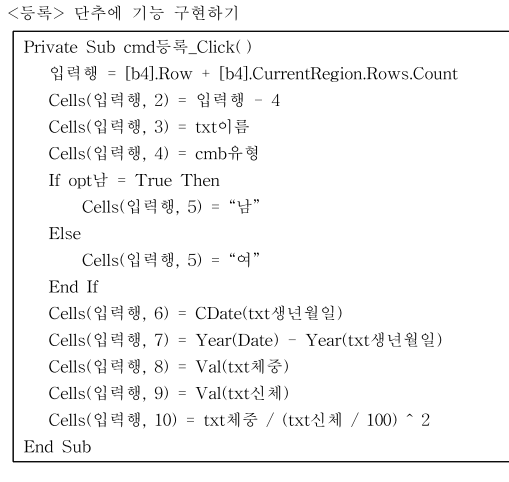 종료단추를 클릭하면 오늘 날짜와 시간을 [E2]셀에 표시하고 폼을 종료하는 프로시저를 작성하시오. 인데