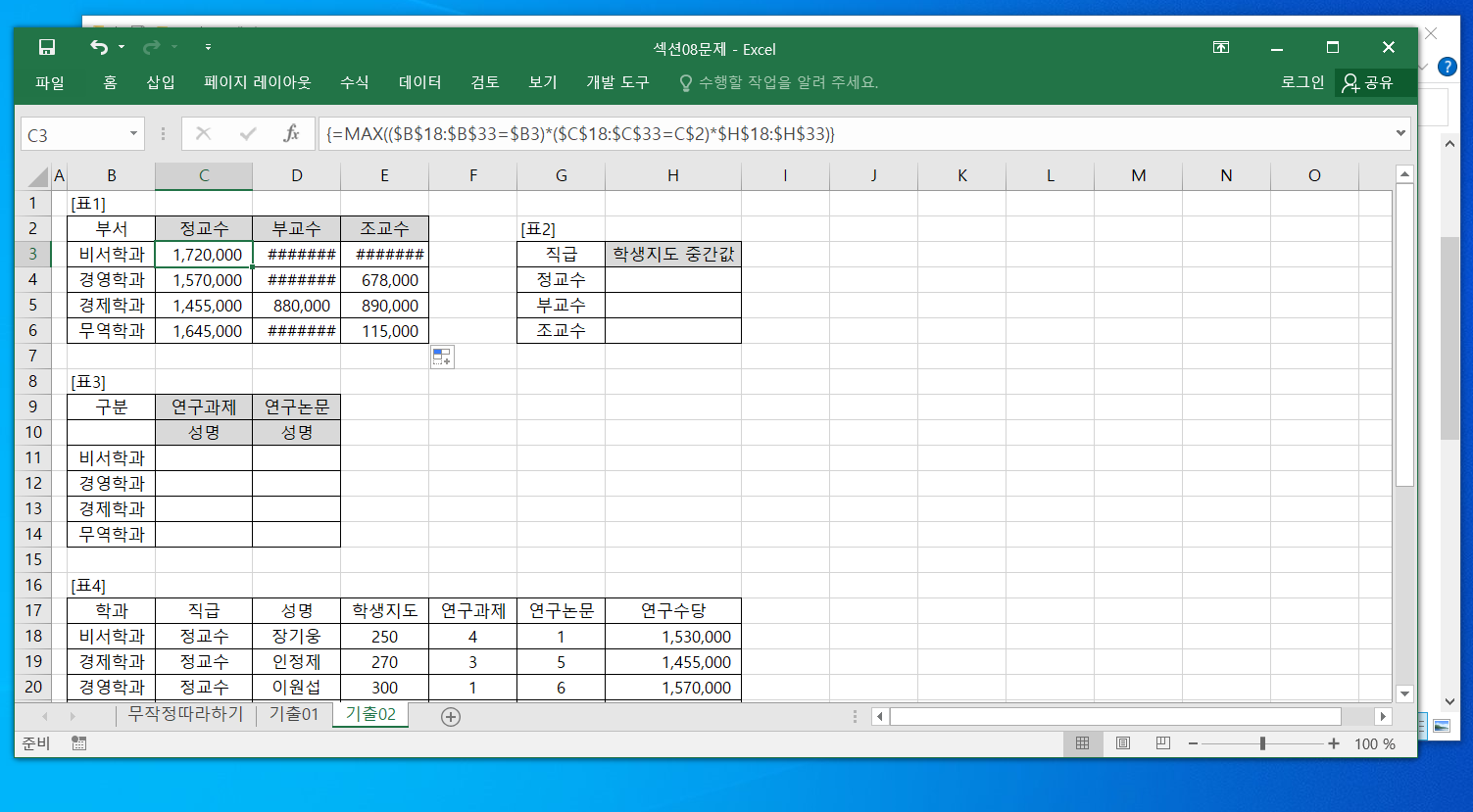 함수를 캡쳐본과 같이 입력해 채우기 핸들로 채운결과 일부 셀에서 #### 오류가 발생합니다.