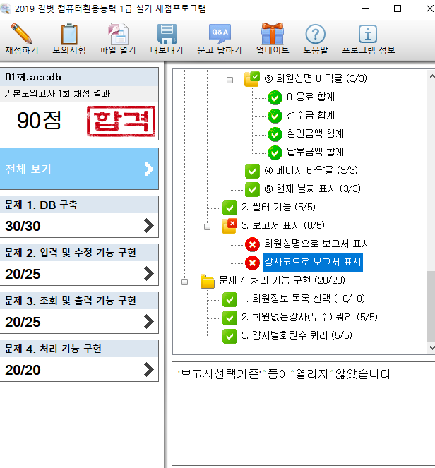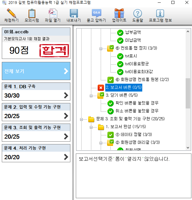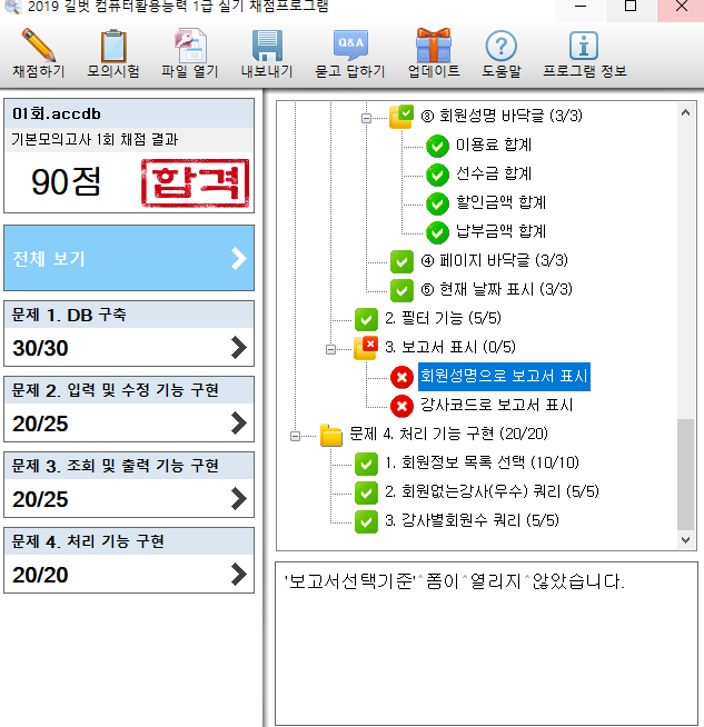 (2-2번 보고서버튼에서 열리지 않았고, 3-3번 보고서 표시에서 열리지 않아서 10점 감점되었습니다.)