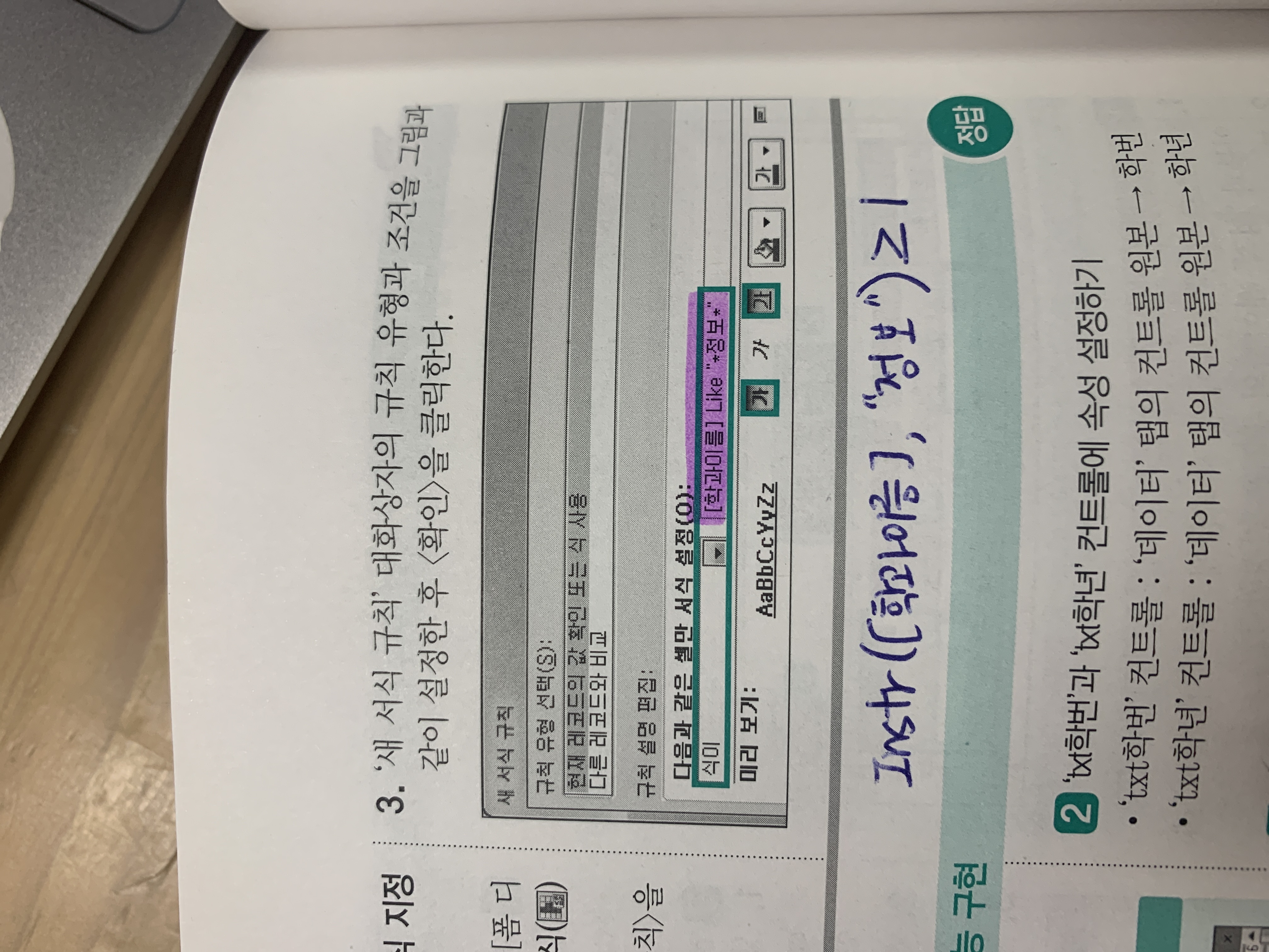 문제 2-3 조건부서식문제에서 답을 이렇게 적어도 문제 없을까요?