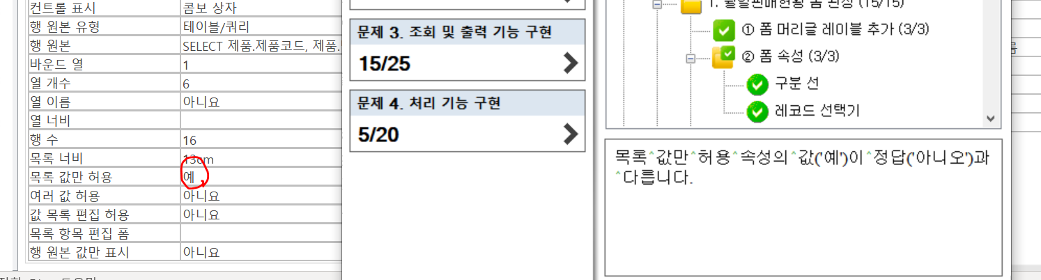 문제에 목록 값만 입력할 수 있도록 설정하라 되어있어서 예로 표시했는데 왜 아니오에요?