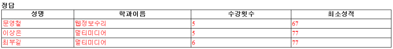 2번 문제도 똑같은 이유로 틀렸습니다. 문제의 <그림>과 제가 작성한 쿼리는 일치하는데