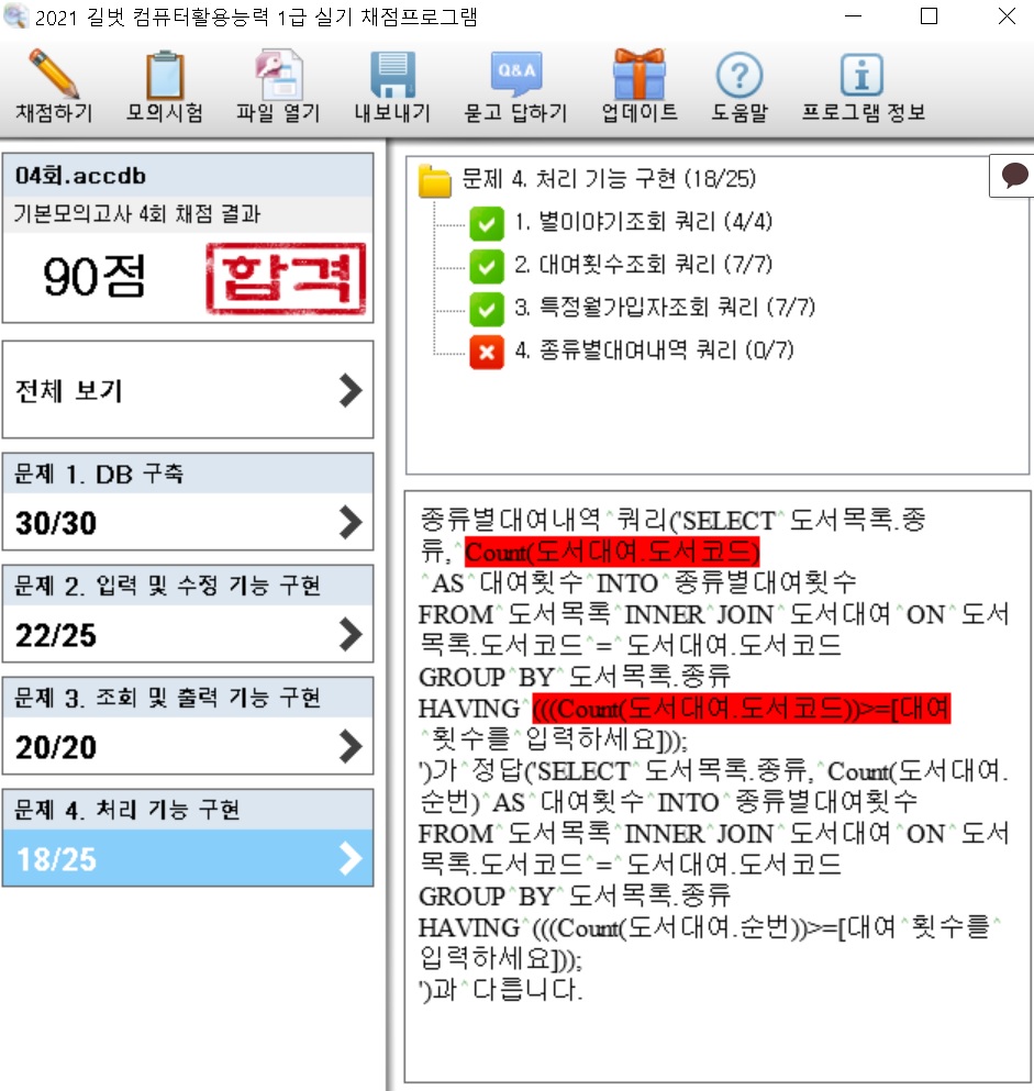 하지만 실제 시험에서는 결과가 동일할 경우 모두 정답 처리합니다. 이점 감안하여 채점 결과를 적용시켜 주세요.