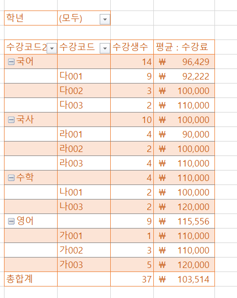 지금은 그룹 상단에 모든 부분합 표시 로 되어 있는 것입니다.