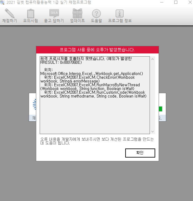 엑셀 채점 프로그램 오류입니다.