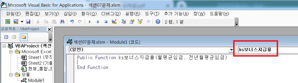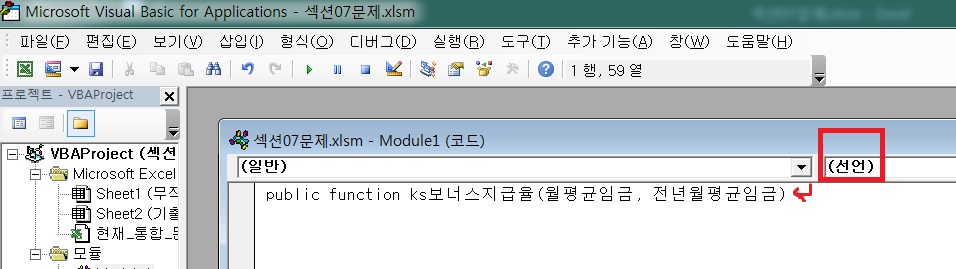 선언 부분에 ks보너스지급율이라고 책은 되어있는데 실행해보니 선언 부분이 (선언)이라고만 되어요