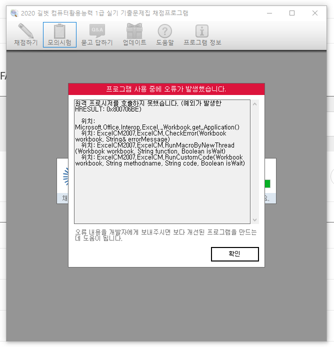이때는 윈도우를 재설치하신 다음 채점프로그램을 사용해봐주시길 바랍니다.