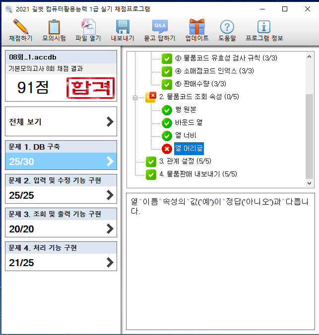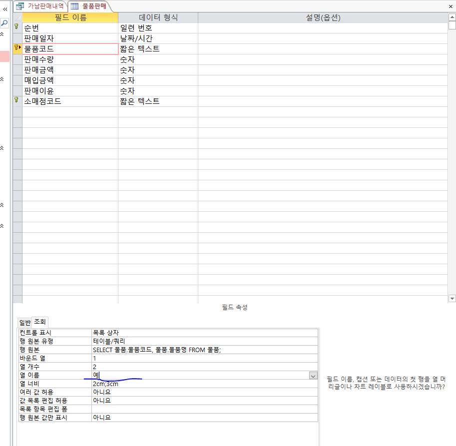 교재에 열 머리글을 표시할 것 이라고 나와서 열 이름 속성 값을 예로 했더니 오답이라고 나옵니다 수정 부탁드립니다.
