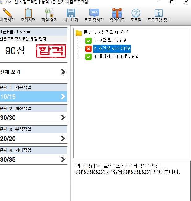 엑셀 실전모의고사 F형 (프로그램 2페이지) 조건부서식 오류 수정 부탁드립니다.