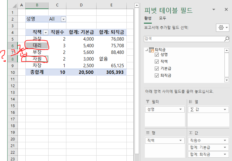 만약, 위 그림처럼 대리와 사원으로 문자로 그룹을 만든다면 어떻게 해야 하나요?