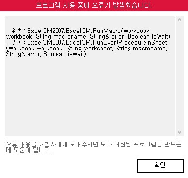 문의하신 오류는 윈도우 환경 문제로 비쥬얼 베이직 쪽에서 오류가 발생한 것으로 보여집니다.