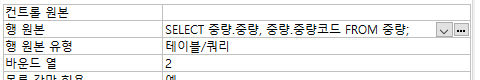 아래 부분에 표시된 값을 보고 중량이 바운드 됐다고 생각하시는 건가요? 여기에 표시된 값과 바운드 된 값과는 무관합니다. 바운드 열을 2로 지정하였기때문에 해당 컨트롤에 바운드 된 열은 중량 코드가 맞습니다.