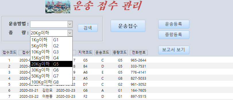 [중량과 중량코드 순서로 연결했습니다.]