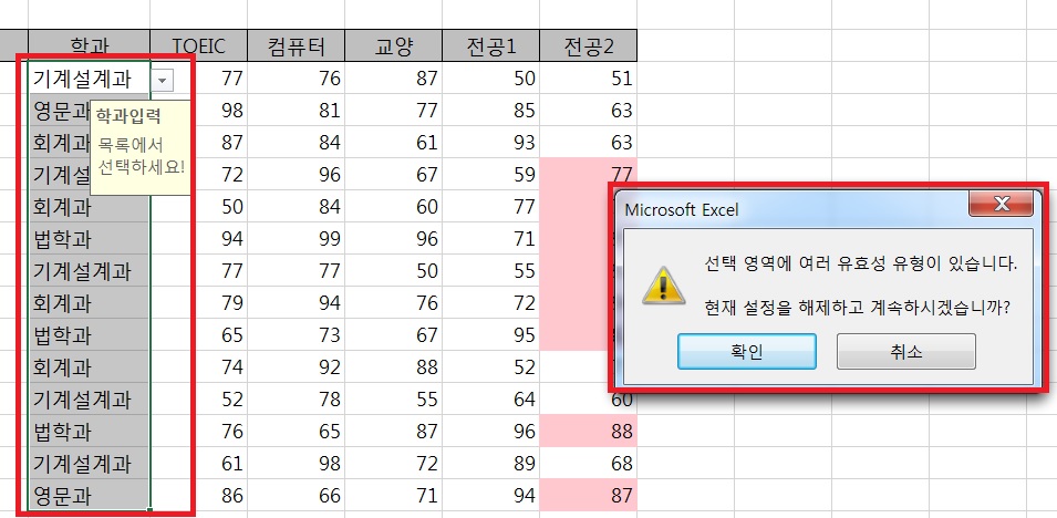 해당 내용을 다시 지정한 후 확인 해 보세요.