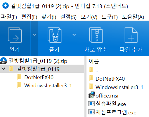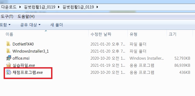 자료실 -> 실습예제 -> 2021 시나공 컴퓨터활용능력 1급 실기 [기본서] -> 길벗컴활1급_0119 를 다운 받은 후 압축을 해제하면 아래 그림과 같이 표시됩니다.