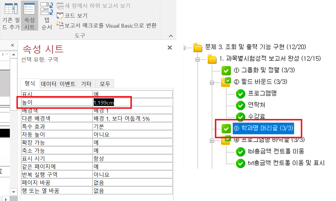 1-③ 학과명 머리글 영역의 높이를 1.2cm로 조절하시오.