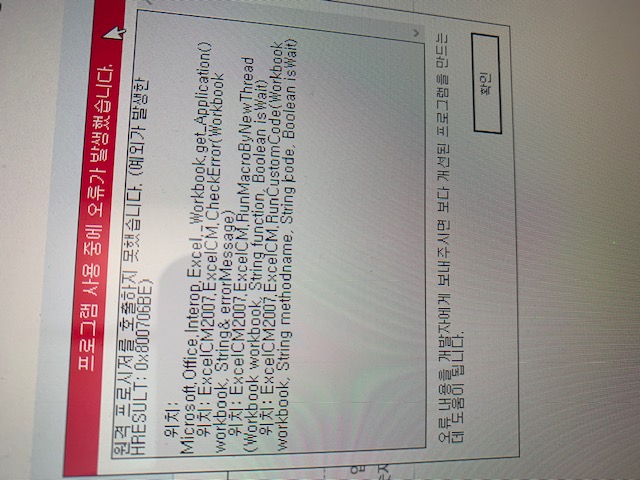 0x800706be 오류는 윈도우 환경 문제로 비주얼 베이직 쪽에서 오류가 발생한 것으로 보여집니다.