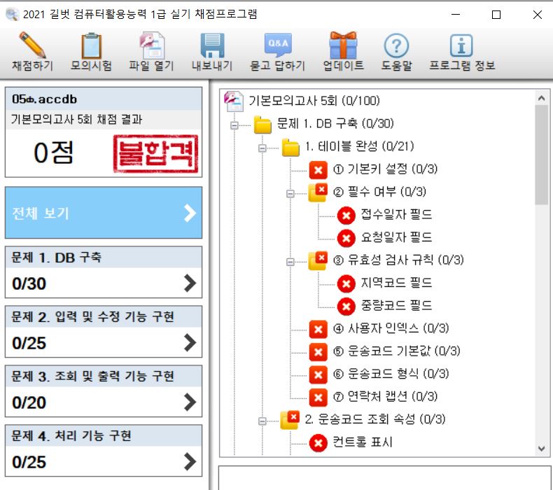 원본 엑세스 파일을 넣어도 다 저렇게 오류가 뜨고 채점 프로그램의 모의 시험을 돌려도 저 오류가 뜹니다. 해결방안이 있을까요?