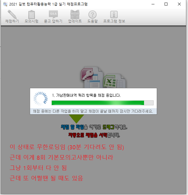 VBA 오류일 수 있기에, 사용하시는 채점프로그램과 오피스프로그램