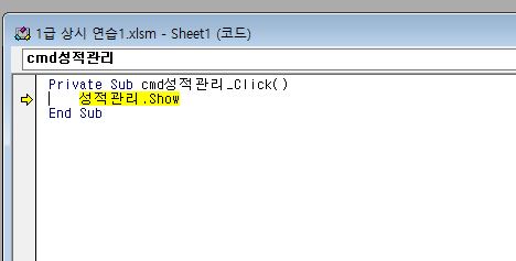 디버그 확인해 보니 폼 표시하는 부분에 하이라이트가 돼 있는데 무엇이 문제일까요?ㅜ