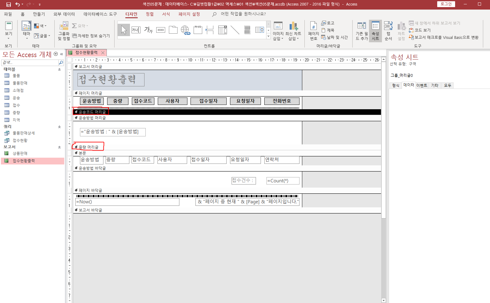 액세스 126쪽 기본문제를 풀고 있는데