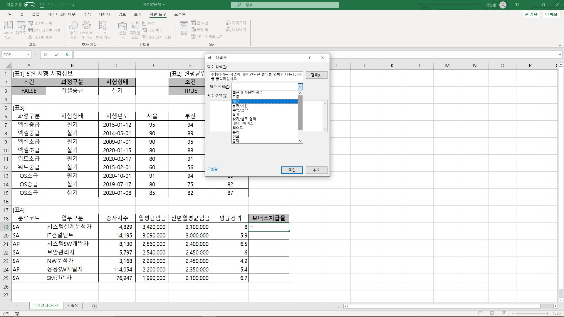 '함수 마법사' 범주 '사용자 정의' 에서 ks보너스지급율이 나오지 않습니다
