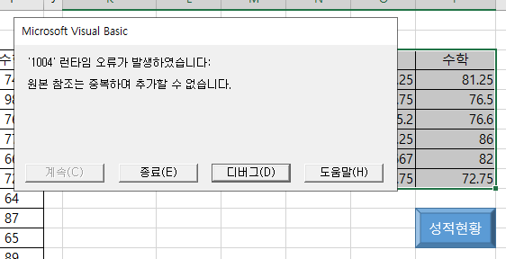 다름이 아니라 데이터 통합 기능을 이용하는 매크로 문제에서 계속 디버그 오류가