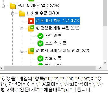 차트 그림은 문제에 주어진 것과 똑같은데 범위 선택에서 틀렸다고 채점이 됩니다.
