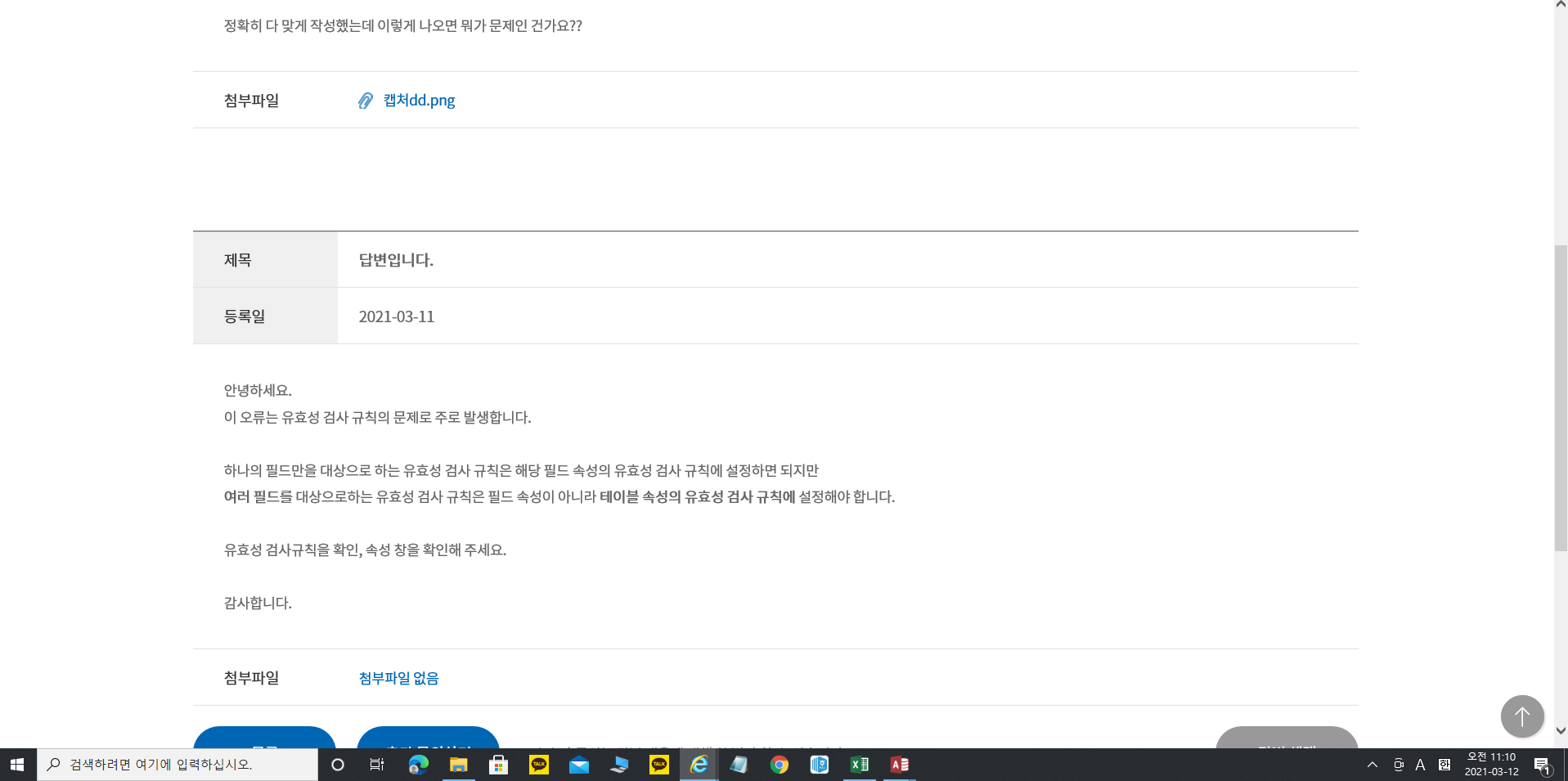 문제에서 어떻게 나왔을 때는 속성창을 이용하여 유효성검사규칙을 작성하고 어떻게 나왔을 때는 그냥 입력하면 되나요??
