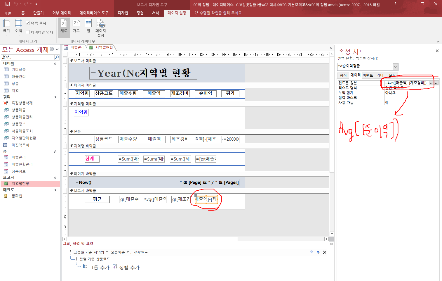 Avg([매출액]-[제조경비]) 를 Avg([순수익]) 이라고 쓰면 안되나요?