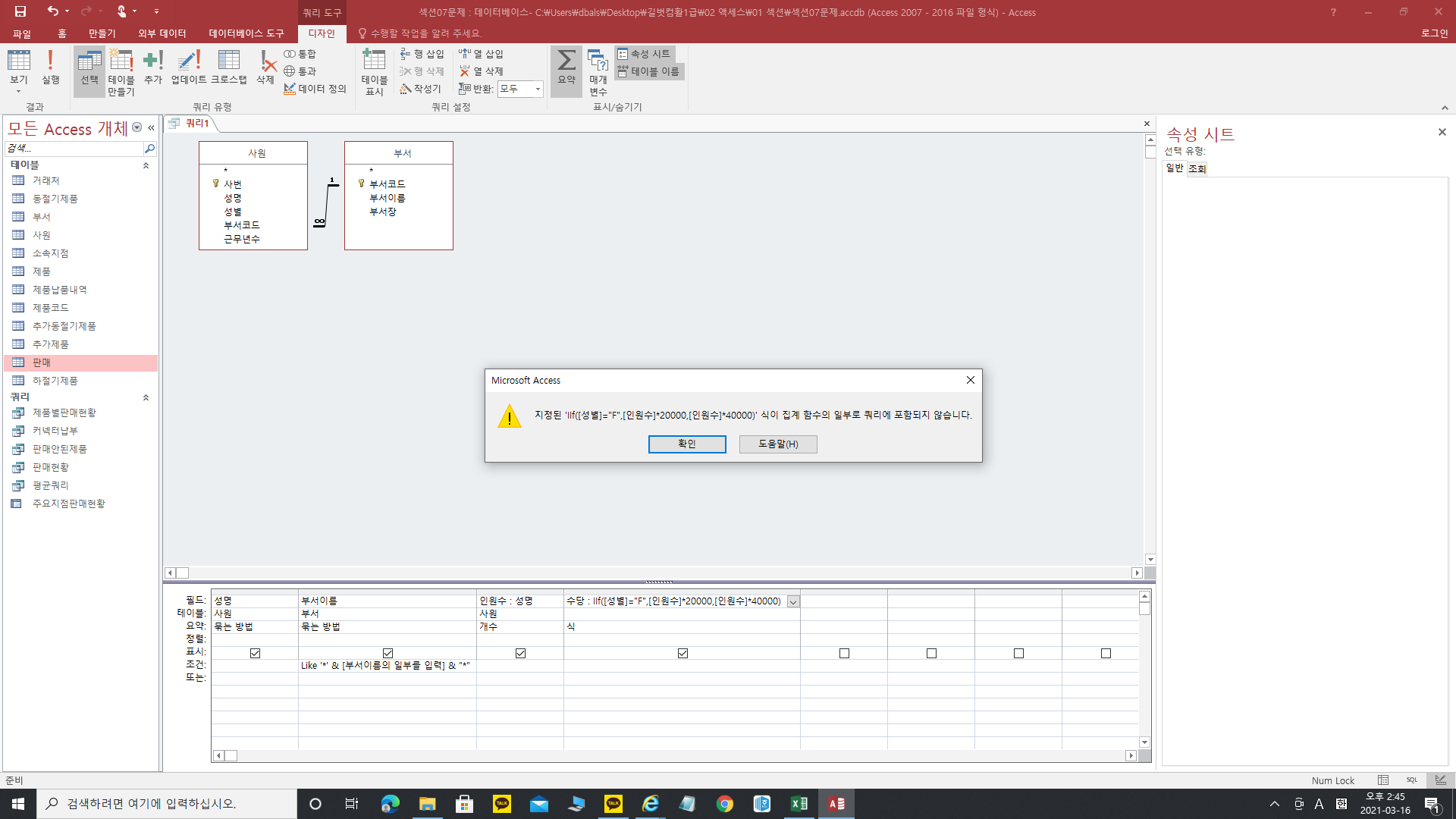 작성하신 액세스 파일 자체를 올려주세요. 파일을 봐야만 정확한 답변이 가능할 것 같네요.