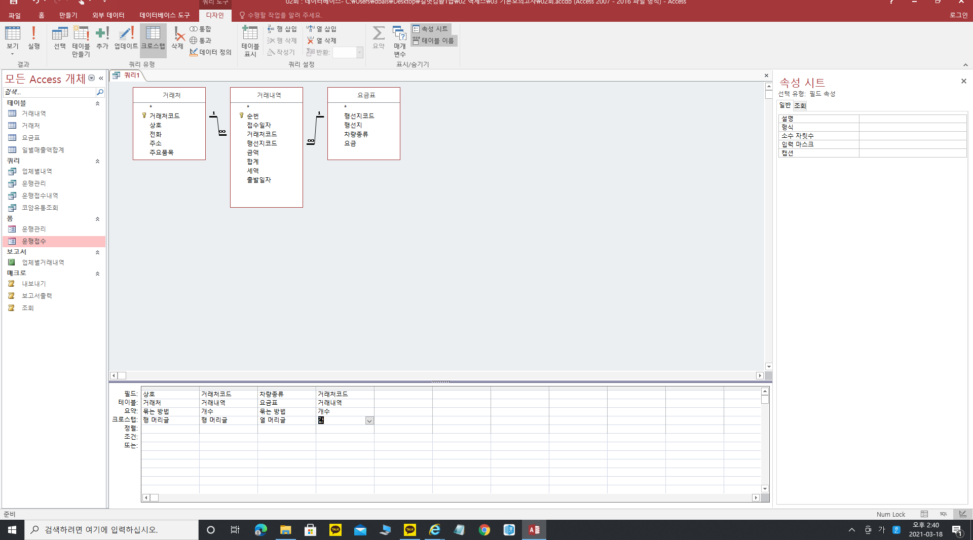 1. 크로스탭 쿼리에서는 순서가 상관이 없습니다. 필드 순서를 바뀌어도 요약에 맞게 표시가 되거든요.