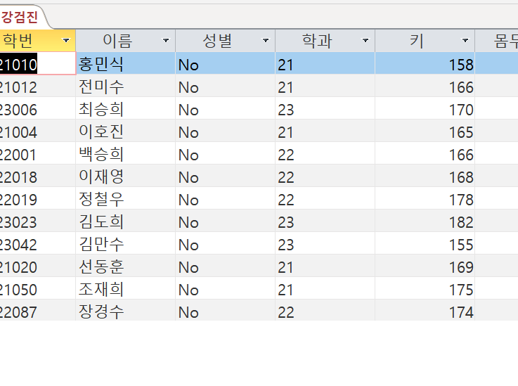 엑세스 문제 1번에 3번 중 건강검진 테이블의 성별 필드에 대해 남자와 여자가 콤보상자 형태로 나타나도록 설정하라고 나옵니다.
