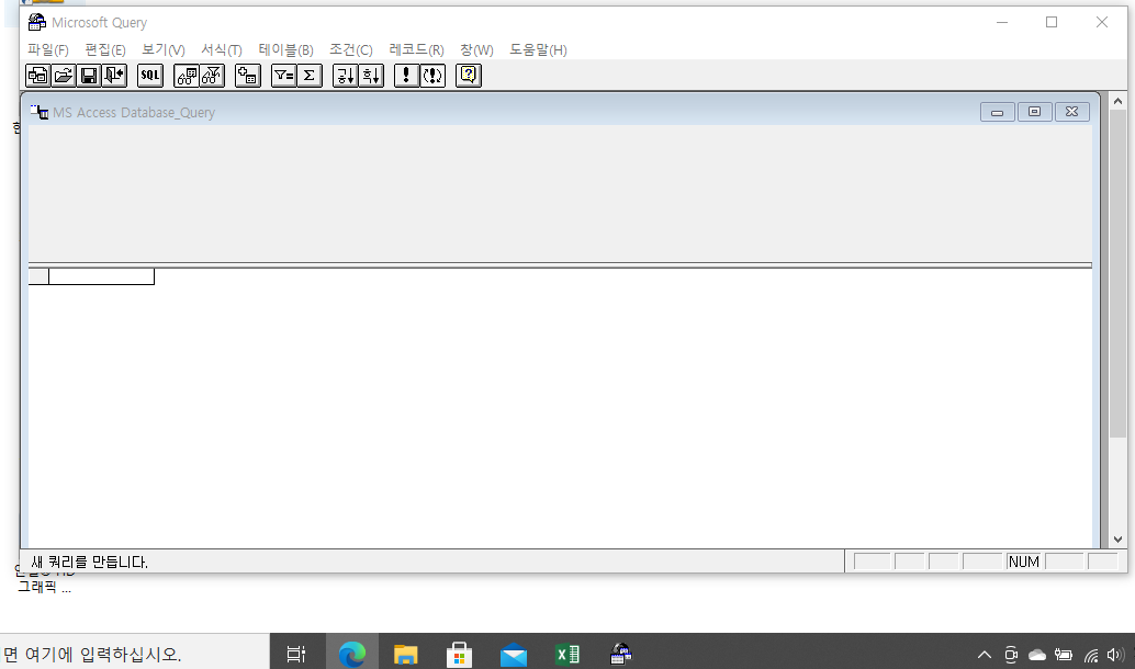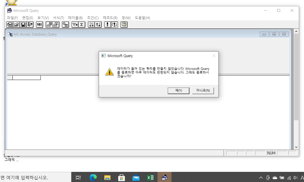 '데이터베이스 선택' 대화상자에서 '모의주식투자.accdb'를 선택하고 확인을 누르면 아무것도 뜨지 않습니다.