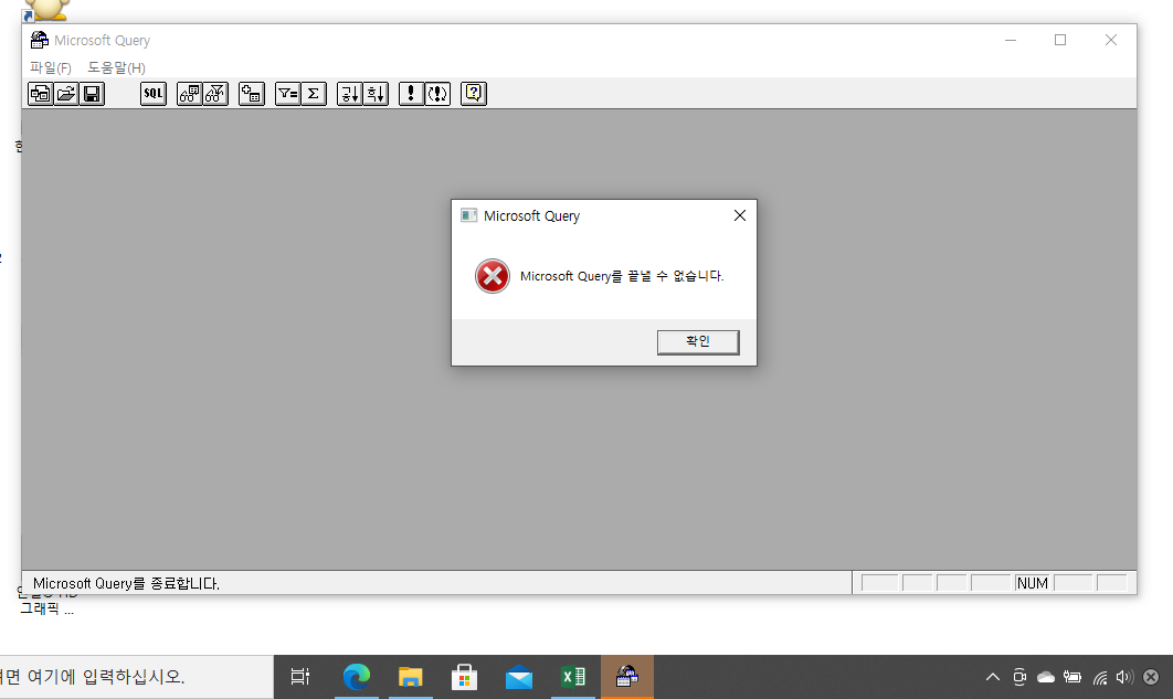 아래에 첨부한 화면이 뜨며, 종료가 되지 않습니다.