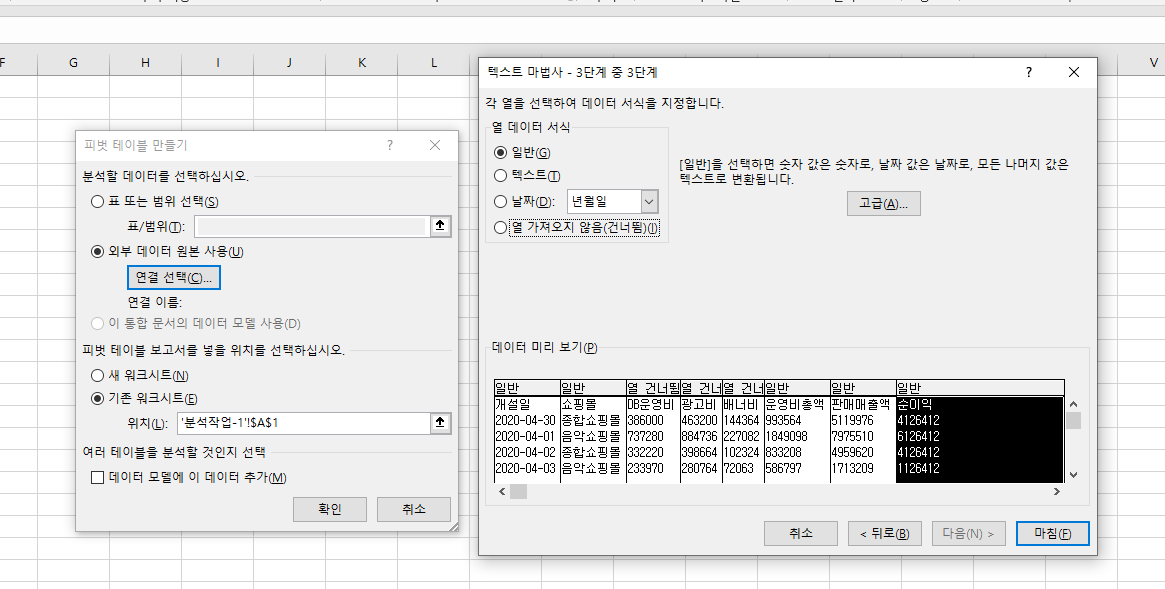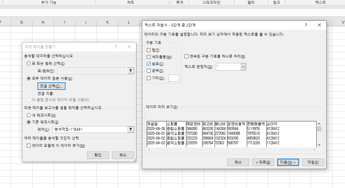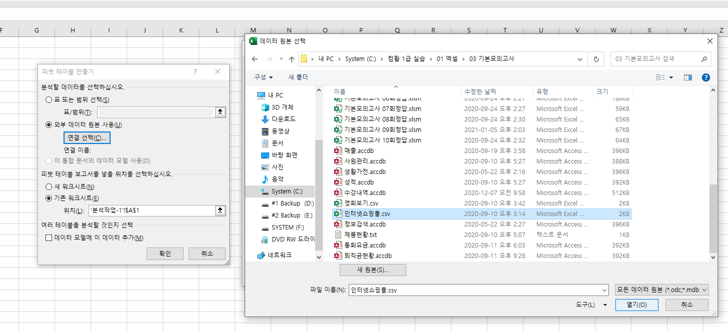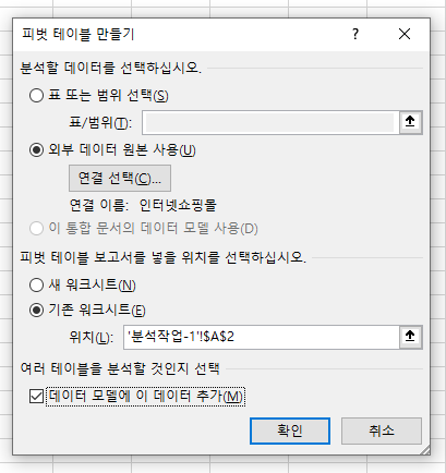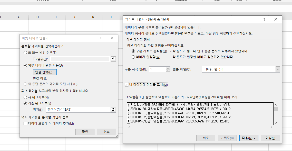 외부 데이터 원본으로 <인터넷쇼핑몰.csv> 데이터를 사용해