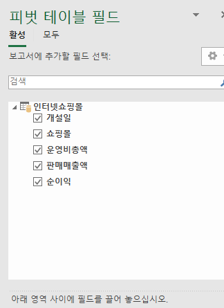 피벗 테이블 필드에 '개설일(월)' 필드가