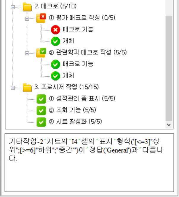 모의고사 문제를 다 풀고 채점 프로그램으로 채점을 돌렸는데 사진과 같이 나오더라고요.