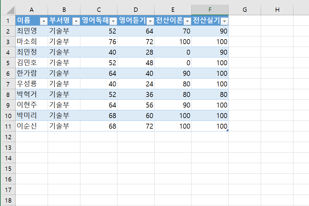 문제에서 지시한 필드의 순서만 제대로 지정하시면 정답으로 인정 됩니다.