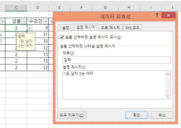 170쪽, 문제3-2번 데이터 유효성 검사 "설명 메시지"