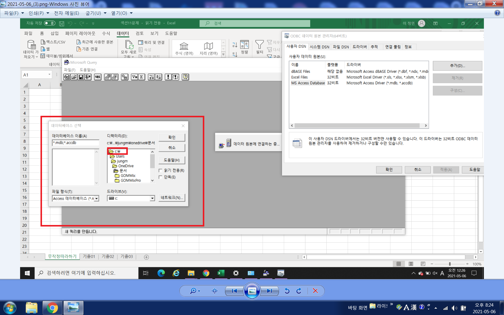 데이터 원본에 연결하는 중만 뜨고 잘 안되네요 ㅠㅠ