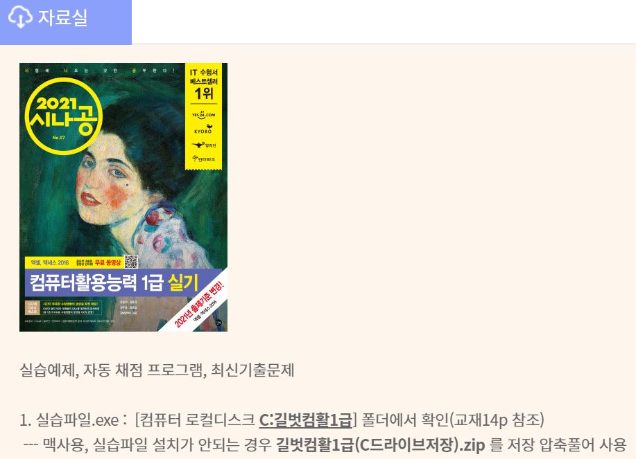 이 외에는 2021_컴활1급_실기_기본서_0415.zip 통합파일로 설치/이용해주시면 됩니다.
