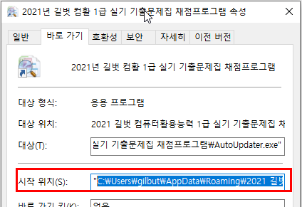 a) 바탕화면의 채점프로그램 우클릭 > 속성 창의 > 시작 위치 경로로 이동(" "큰 따옴표 제외 한 주소를 복사하여 아무 폴더 주소창에 붙여넣고 엔터)