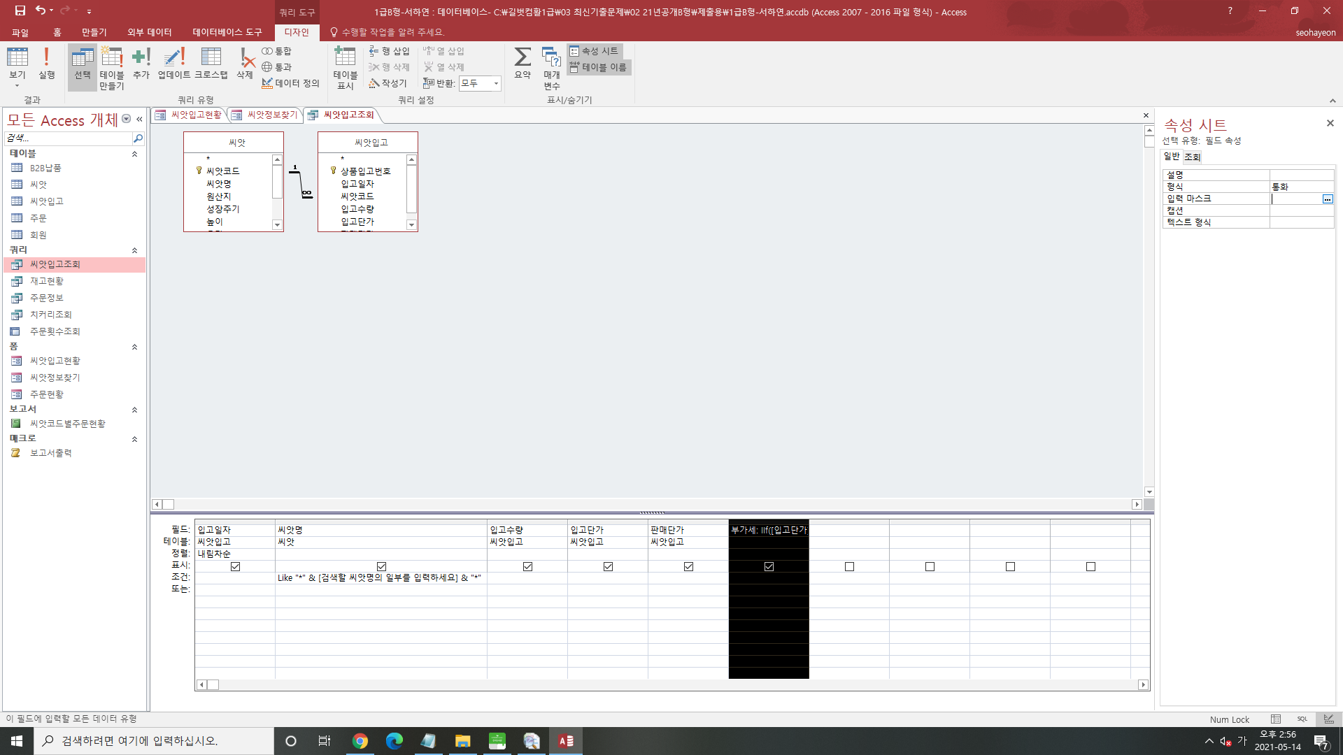 <씨앗입고조회> 쿼리 작성하는 문제인데요.