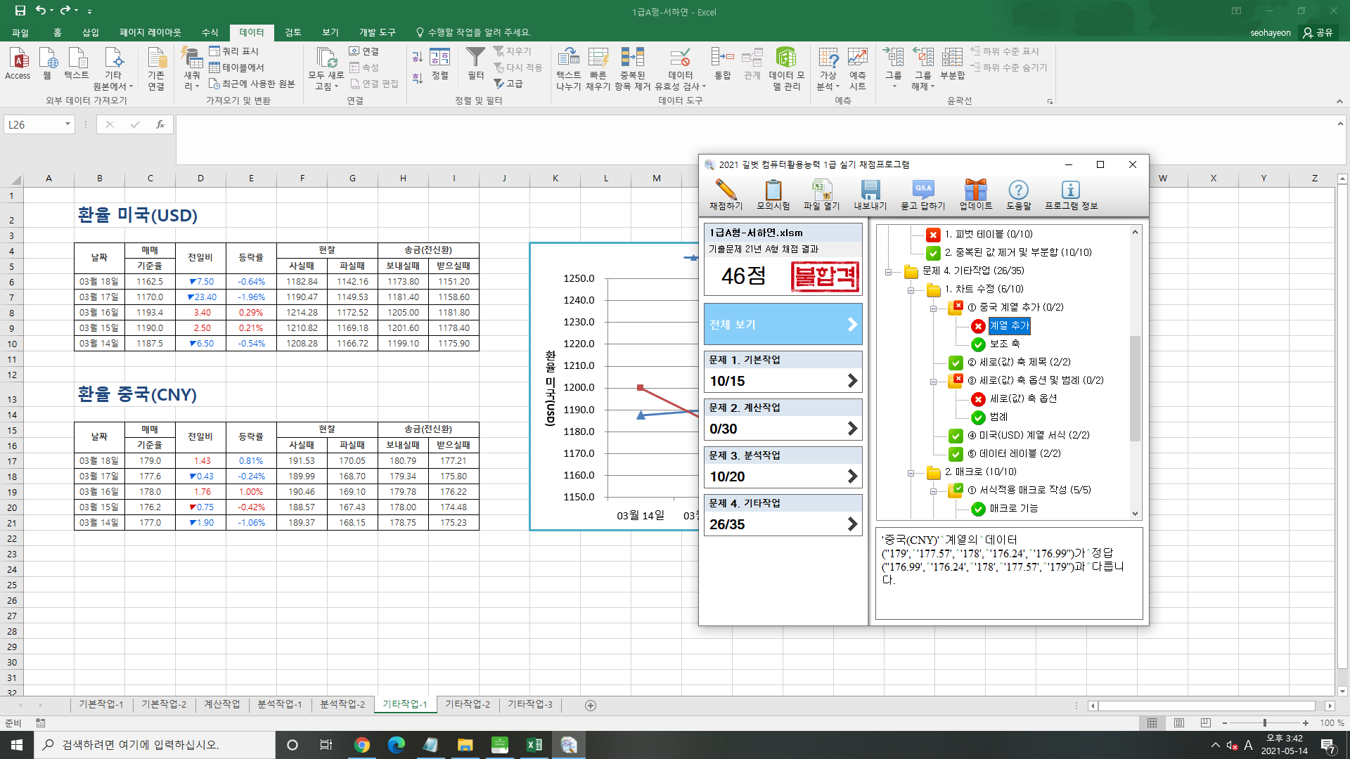 별책 161페이지 2021년 A형 엑셀 문제4-1-1 이 자꾸 틀렸다고 채점되네요
