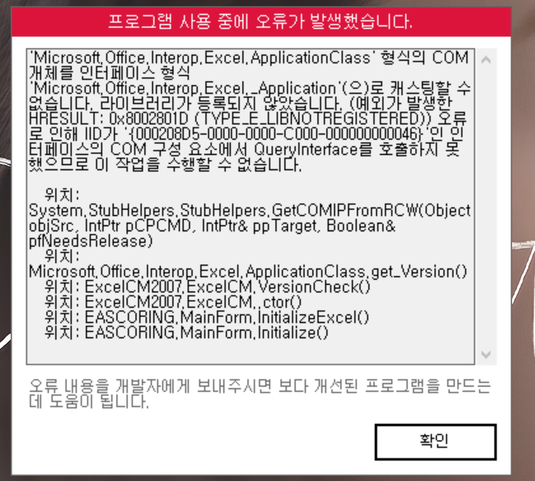 문의하신 오류는 레지스트리가 손상되어 발생한 오류입니다.